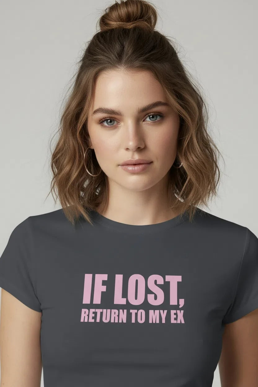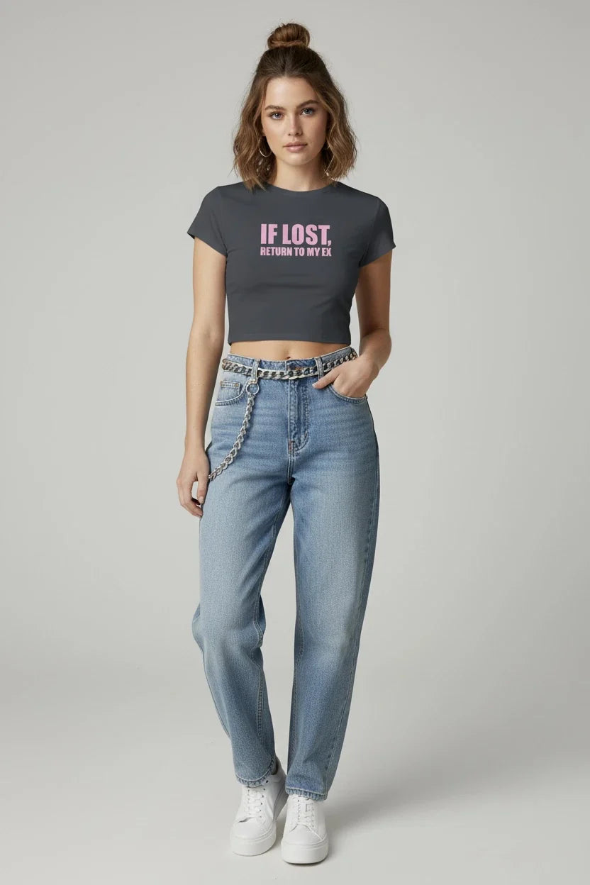 Grey "If Lost, Return to My Ex" Graphic Crop Top