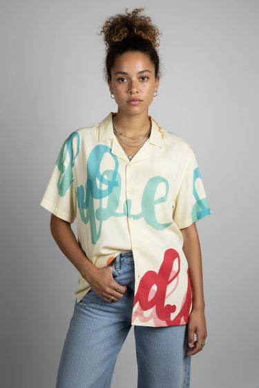 This shirt is a walking vibe check—covered in bold, oversized "dope" lettering that feels spontaneous and unapologetic. The overlapping typography mirrors Gen Z’s loud, layered identity and love for expressive chaos. It’s not just about the word—it’s about owning the attitude.