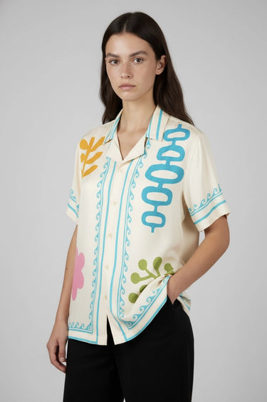 SIDE PROFILE OF A MAN WEARING OASIS PRINT SHIRT FOR MEN
